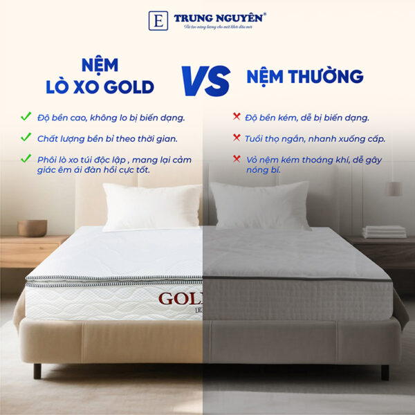 - Tuân thủ các hướng dẫn này sẽ giúp bạn bảo quản và sử dụng nệm lò xo túi độc lập Gold Hybrid Trung Nguyên một cách hiệu quả và an toàn.
